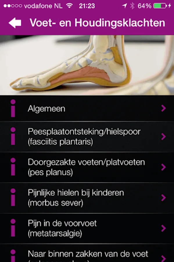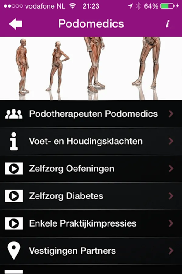 This app provides information about the most common foot and posture complaints. In addition, it shows videos with exercises in general and important self-care for diabetes patients, in particular. You will also receive an overview for all podotherapy reimbursements through your health insurance policy and Podomedics podotherapy practices in your area.