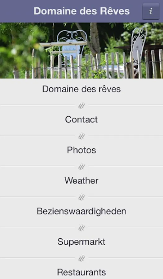 Guests App. includes information on location, excursions, attractions, supermarkets, restaurants, sports / active capabilities etc. Walking Info. near Domaine des Rêves with directions and maps / photos. Important addresses and tel. Numbers (doctors / hospital / fire department / emergency numbers) Further, todate. The above-described spaces are provided with a roadmap that starts from GOOGLE MAPS and use it directly for the navigation to the appropriate location. For the entire APP. Internet is a requirement!