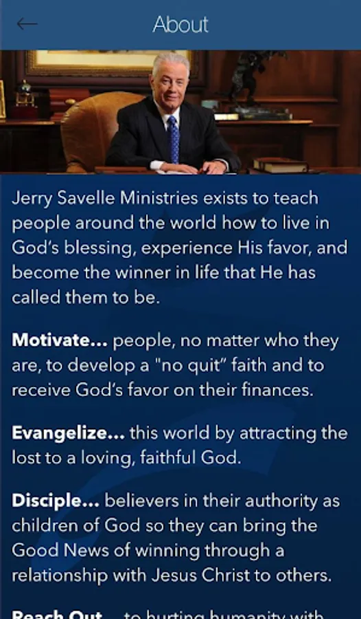 This app is designed to bring similar content found on the JerrySavelle.org website, to mobile devices. Features available in this app are: