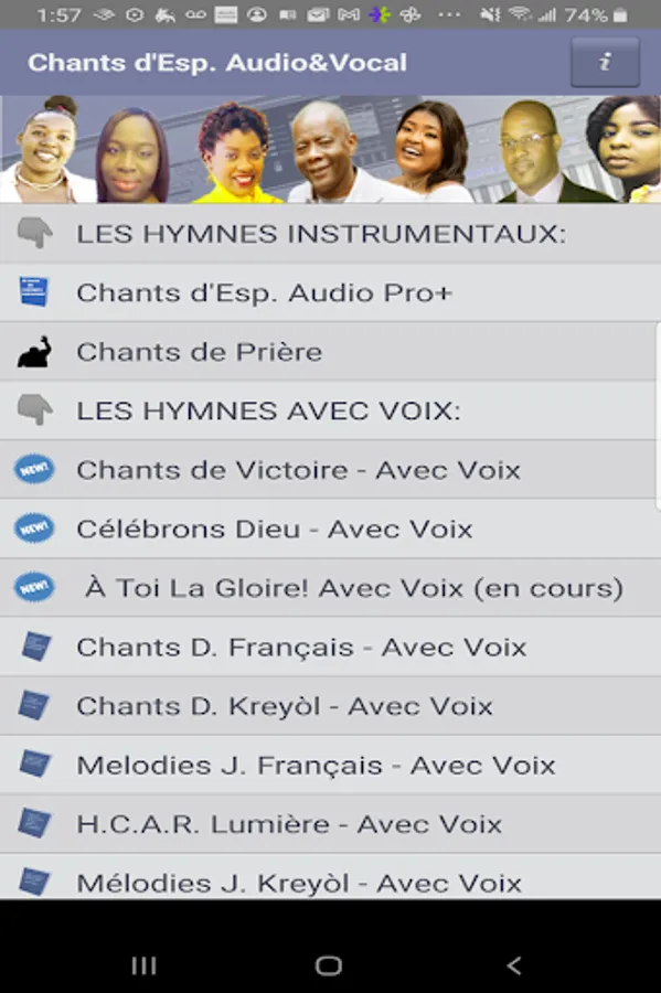 The vocal version and the audio version of the chants d'esperance are combined to give you the best of both Apps. We offer 10 instrrumental hymns in the Audio Pro+ and 8 vocal hymns in the Vocal Pro. This is a library of great spiritual hymns for those who want to occupy their minds with spiritual songs in order to remain closer to Jesus.