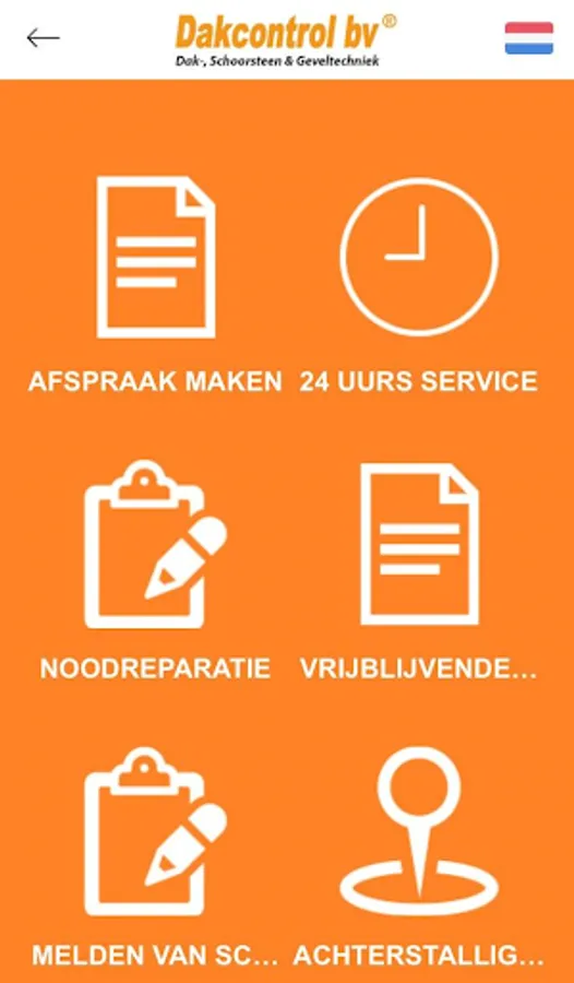 Met de app van Dakcontrol bv kunt u een afspraak maken, gebruik maken van de 24 uurs service, reparatie's melden en nog veel meer!