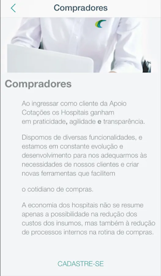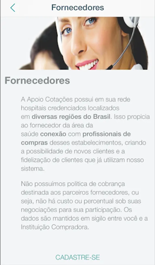 Apoio Best Cotações: plataforma de cotações eletrônicas especializada na área da saúde, que objetiva estreitar e dinamizar o relacionamento entre organizações de saúde e seus fornecedores.
