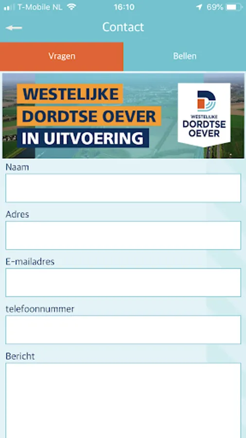 In this app you will find all information about the work of the Westelijke Dordtse Oever project in Dordrecht. Important project information, the latest planning and contact information are displayed. You can also leave questions, comments or complaints related to the project on this app.
