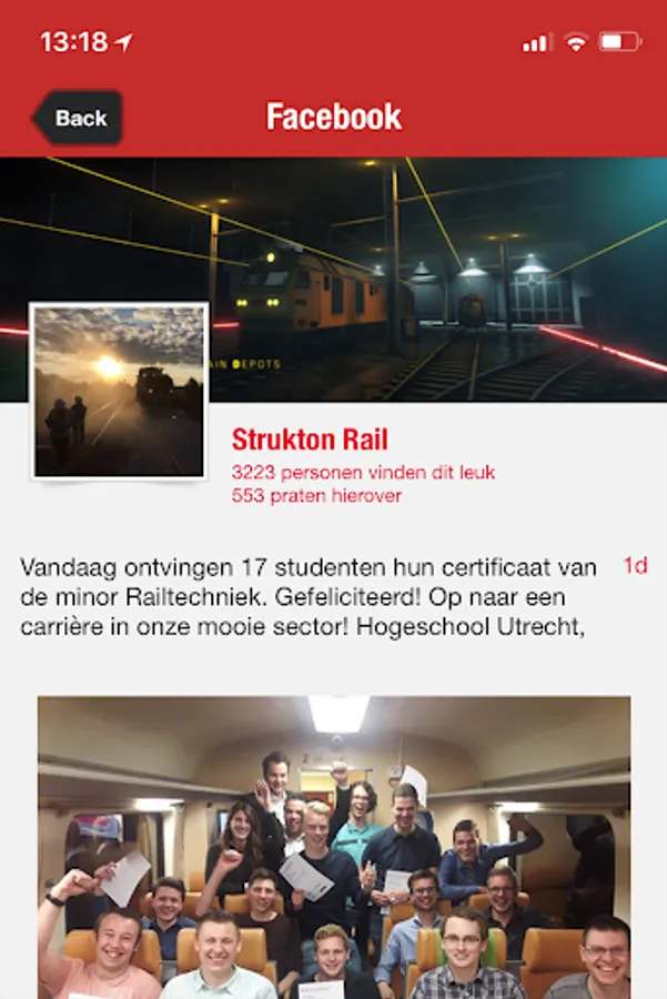 The Strukton Rail BE App has been specially designed for Strukton Rail Belgium employees. The app allows them to consult company information. Employees also have the option of using various internal services from the app.