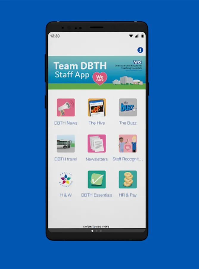 The Team DBTH Staff App has specifically been produced and designed to offer both current and future employees relevant information related to their work. Whether seeking information about policies and procedures, following us on Twitter or even taking advantage of special offers, all can be found here.
