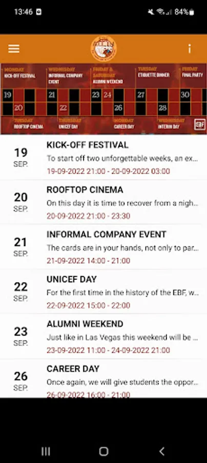 To celebrate 15 years of EBF we have organized two weeks full of various activities from the 19th till the 30th of September. To give you a clear overview of this week and to stay up to date, this app is developed.