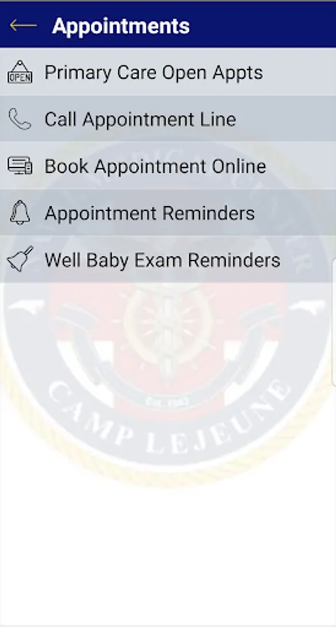 The Naval Medical Center Camp Lejeune phone app provides at-a-glance access to medical clinic contacts, hours of operation, location/directions, pharmacy and appointment information.