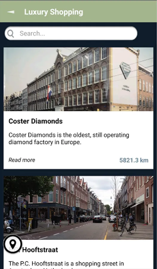 Detailed digital city map showing where you are and where your chosen venue is, including distance and navigation. Clearly marked shopping and nightlife areas.