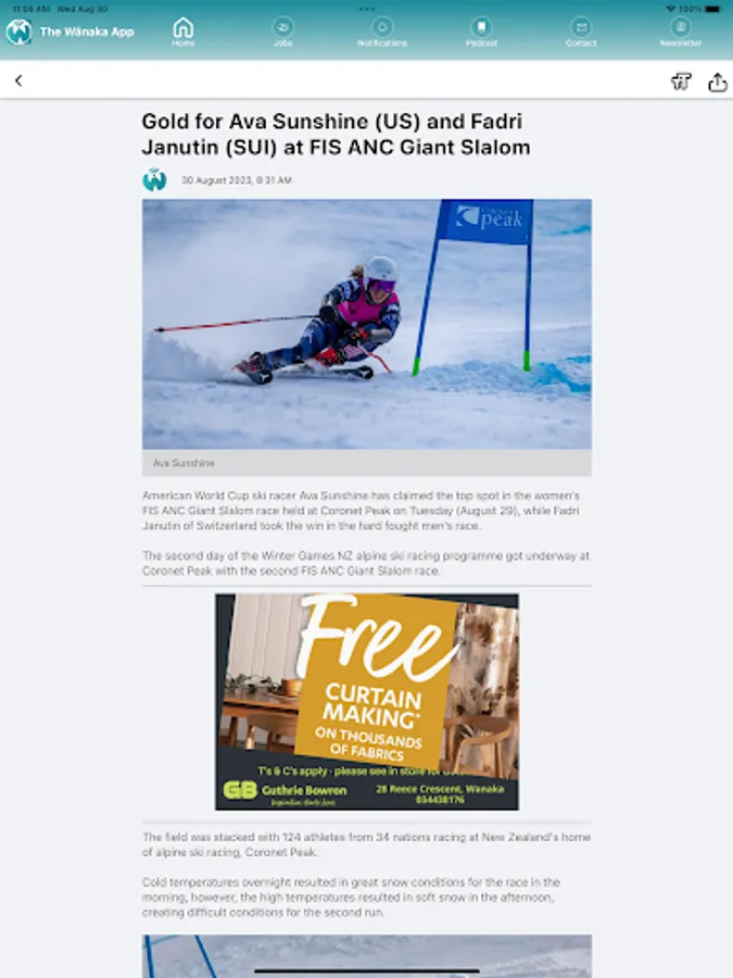 The Wanaka App features local news, sport, information, events, and much more. Its all about the Wanaka community and its surrounds. Now you can get all the information you need in one place, whenever and whereever you are, all on your smart phone. Download the Wanaka App today.