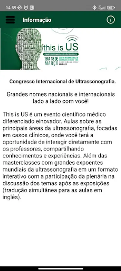 This is US is a unique and innovative medical scientific event. Classes on the main areas of ultrasound, focused on clinical cases, where you will have the opportunity to interact directly with professors, sharing knowledge and experiences. In addition to masterclasses with major world exponents of ultrasound in an interactive format with the participation of the plenary in the discussion of themes after the presentations (simultaneous translation for classes in English).