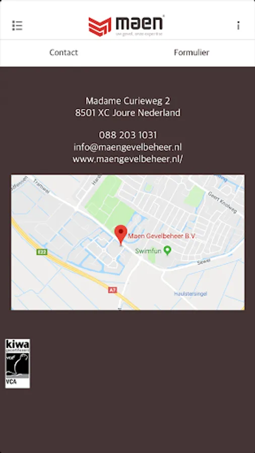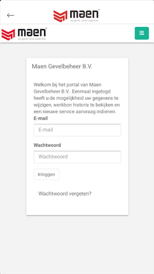 With the Maen Facade Management app you can log in to the customer portal, report calamities, request quotes and much more.