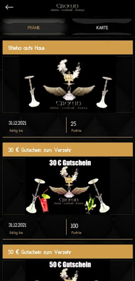 Use our Crown Bar App. With the Crown Bar app you enjoy a lot of advantages and you will be informed about all news and promotions. With the help of the Crown Bar App, you have the opportunity to collect Crown Points and these can be redeemed for a reward or a gift in our Crown Bar