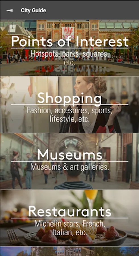 City guide with all points of interest, and special venues selected by locals.
