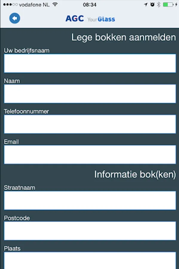 Signing up an empty AGC glasbok is now easy with this AGC Lege Bokken App. Enter your details and the location of the goat and press "send" and AGC will take care of the rest. You will also find the direct contact details of our AGC Glass Stillages NL & BE department and the goat rules
