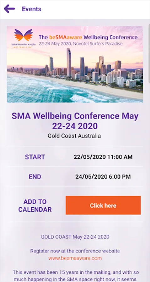 The SMA Australia App will help users connect and share with other members of the SMA community. The App will also provide the latest news on exciting new developments with treatments and the campaign with the Australian government to have access to treatment here in Australia.