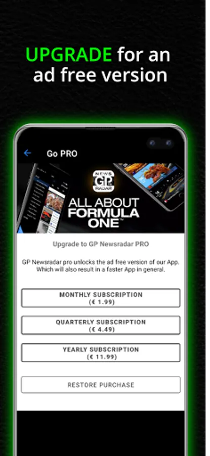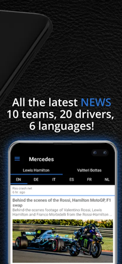 The GP™ NewsRadar App brings you all the global news about Formula One™ Racing. Our advanced search engines are constantly scanning the worldwide web, providing you with all the latest news about Formula One™ in general, but also specific news about all the teams and all the drivers.