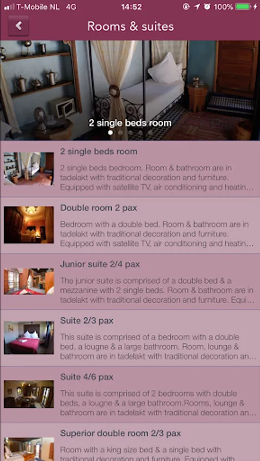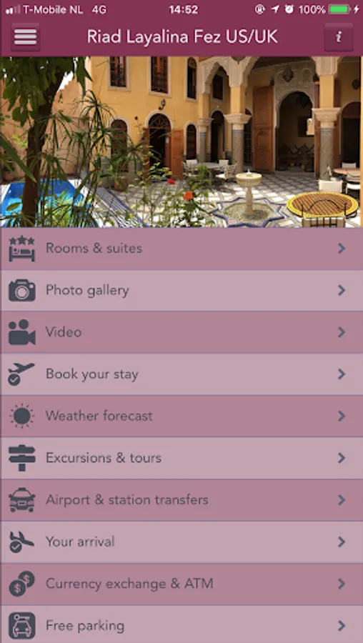This application allows you to choose your room & book your stay at Riad Layalina Fez. You will also find all main infos to prepare your trip and your stay in Fes & in Morocco as well as the services at your disposal to make your stay as confortable as easy.