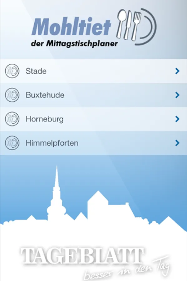 In the "Stade App" you can browse and plan your lunch in offers made by resident of the region Stade companies. You get next to messages from STADER TAGEBLATT | Buxtehuder TAGEBLATT | Altländer TAGEBLATT also an overview of regional events.