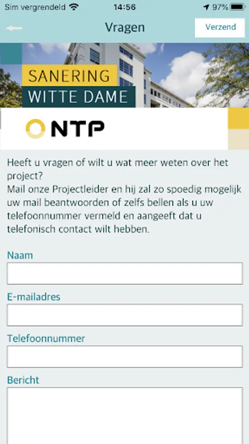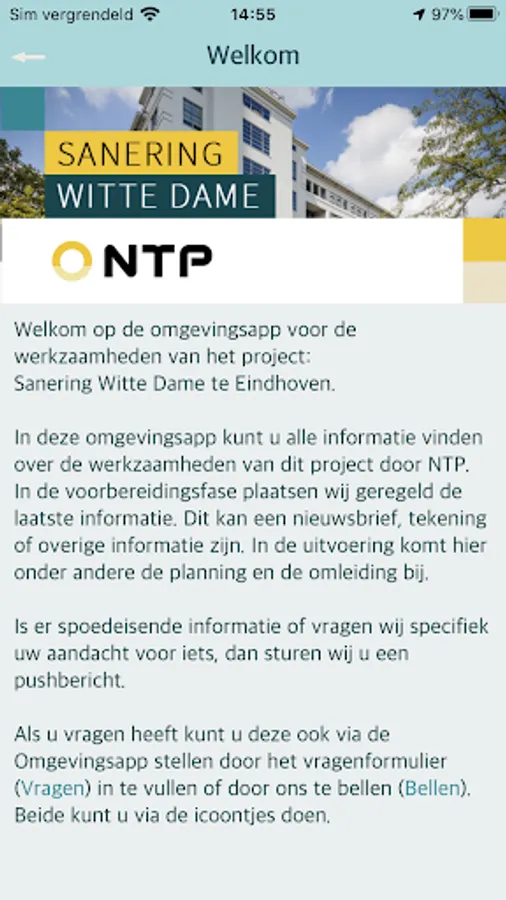 In this app you will find all information about the activities of the 'Sanitation Witte Dame' project in Eindhoven. Important project information, the latest schedule, and contact information are displayed. You can also leave questions, comments or complaints about the project on this app.