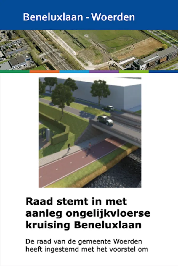 - Cycle through route: In addition to the new Beneluxlaan, we are constructing part of the express cycle route in collaboration with the province of Utrecht: the part from the station area in Woerden to Veldwijk.
