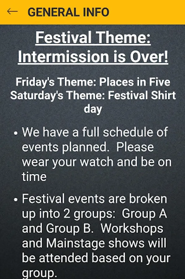 Includes the Festival Schedule, 1-Act Schedule, Workshop Descriptions, and Maps