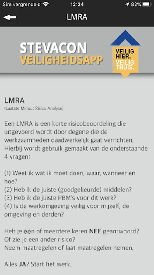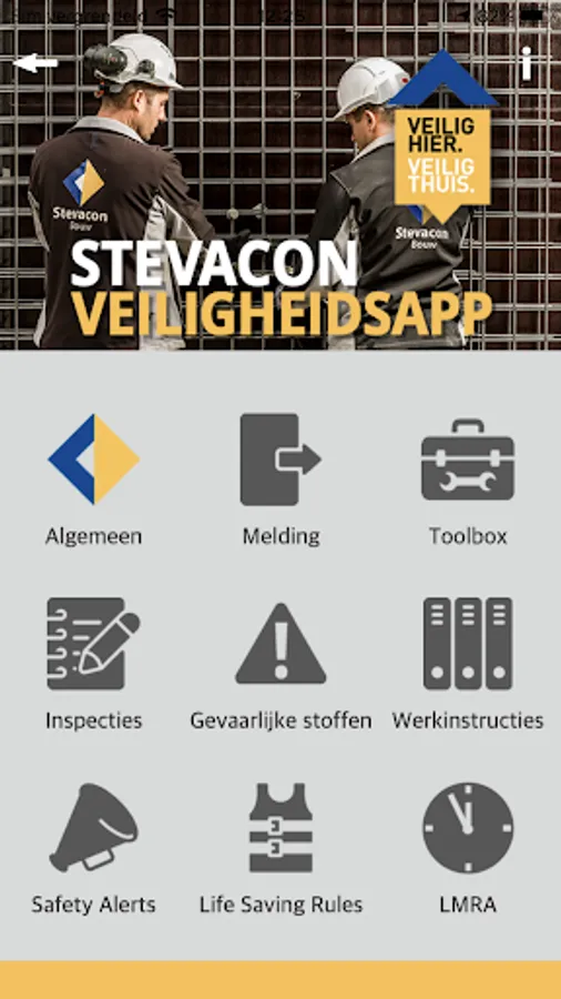 This is the Stevacon Safety App. This contains everything about what to do in case of unsafe situations and unsafe situations can be reported. New information about safe working is regularly posted in this app and workplace inspections can be carried out.