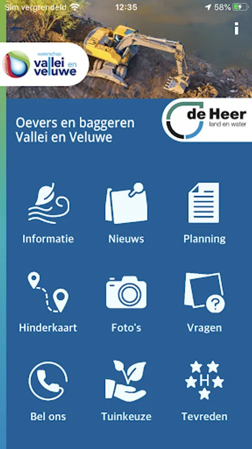 In this app you will find all information about the activities of the project 'Banks and dredging Vallei en Veluwe'. Updates on work progress, latest schedule and contact information are displayed. You can also leave questions, comments or complaints related to the project on this app.