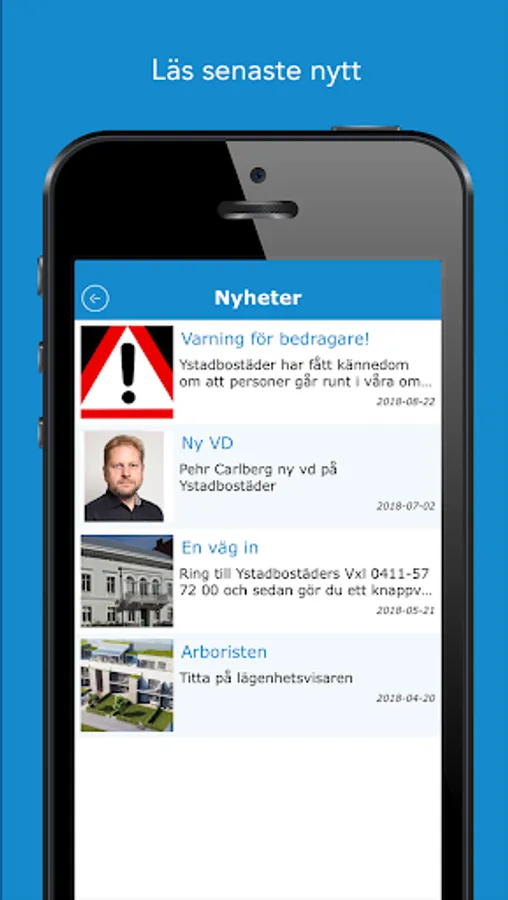 This is Ystadbostäder's app for you who lives with us, here you can make a mistake and see what's happening in your residential area.