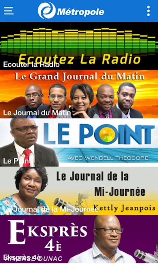 La programmation de radio Métropole est composée de journaux d’information, de bulletins, d’émissions de variété, de musiques nationale et internationale, d’émissions à caractère politique, économique, sociale et culturelle.