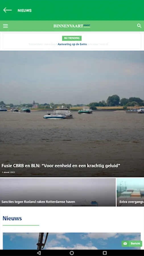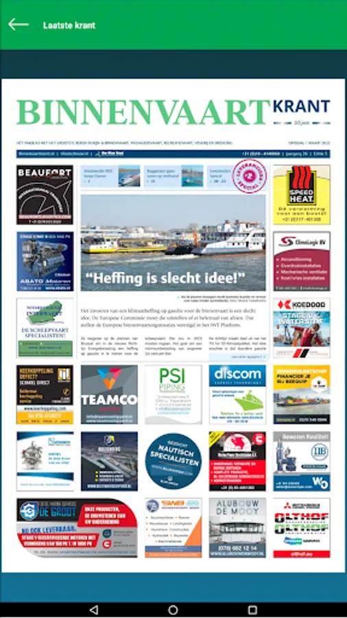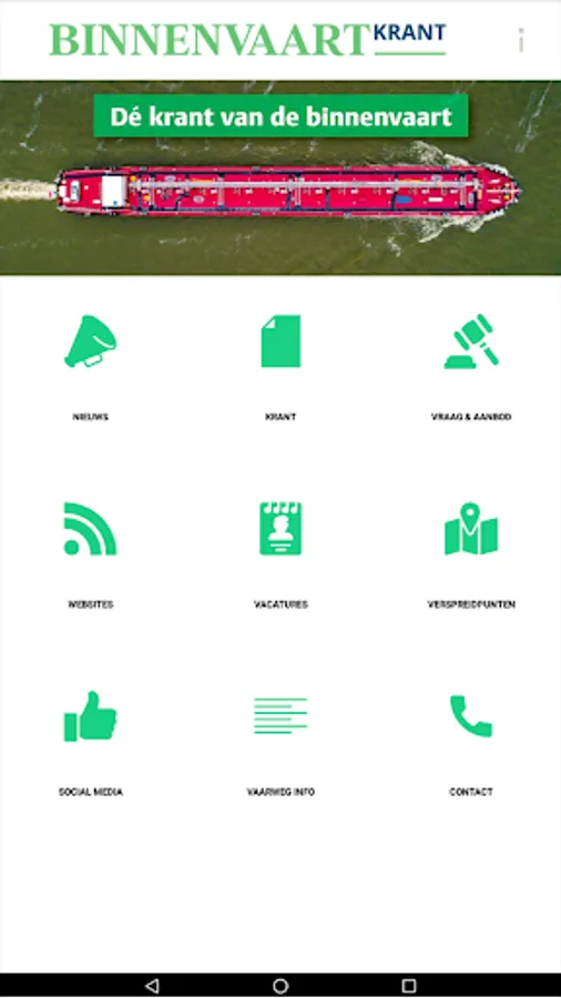 Het laatste nieuws in de binnenvaart direct op je Smartphone, dat kan met onze Binnenvaartkrant-app. Behalve het allerlaatste nieuws en een overzicht van nieuwgebouwde schepen ook de volledige krant met bewegende beelden en directe links naar leveranciers.