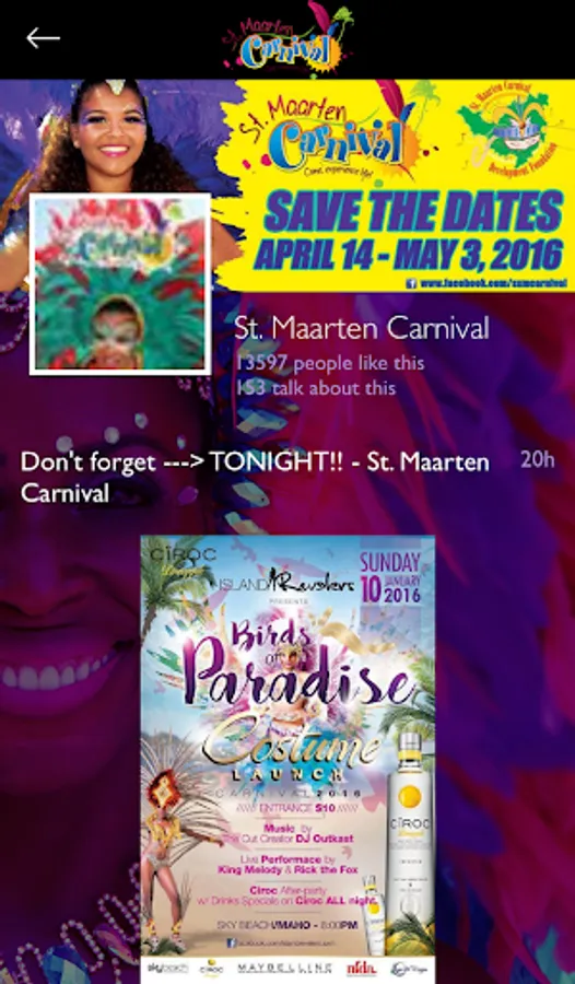 Welcome to the app of St. Maarten’s Carnival. The mere mention of the words lifts one’s spirit and fills residents and visitors alike with feelings of excitement for the Caribbean’s longest annual festival. At three weeks in duration, St. Maarten’s Carnival attracts hundreds of tourists to, as Carnival’s slogan suggests, “Experience Life”, the St. Maarten way. To “play mas” and be part of a festival that is comprised of colorful parades, spectacular local and international concerts and a plethora of food that further proves that St. Maarten is the culinary capital of the Caribbean.