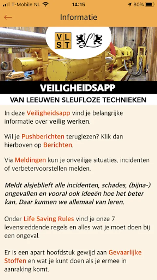 This is Gebr. van Leeuwen Boringen. It contains everything about what to do in unsafe situations and unsafe situations can be reported. New information about working safely is regularly placed in this app and workplace inspection can be carried out.