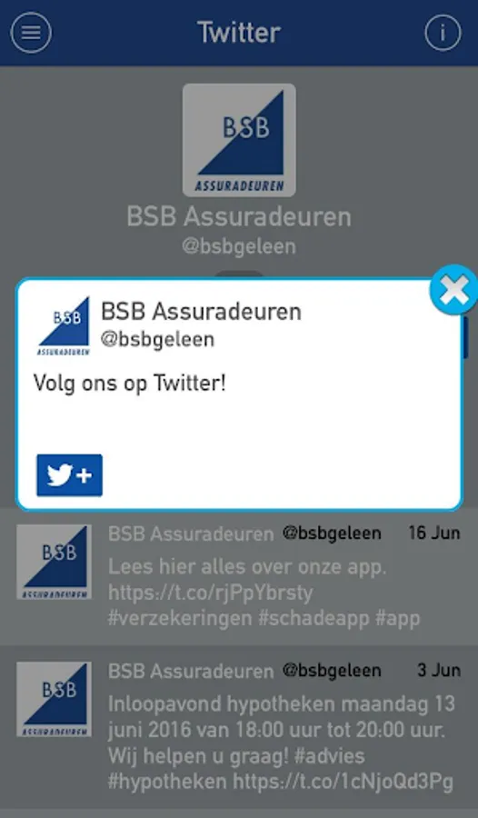 Welcome to the verzekeringsapp BSB Insurance. We are a financial services company specializing in insurance and mortgages. We focus on both the private and business market. With this app we offer an extra service.