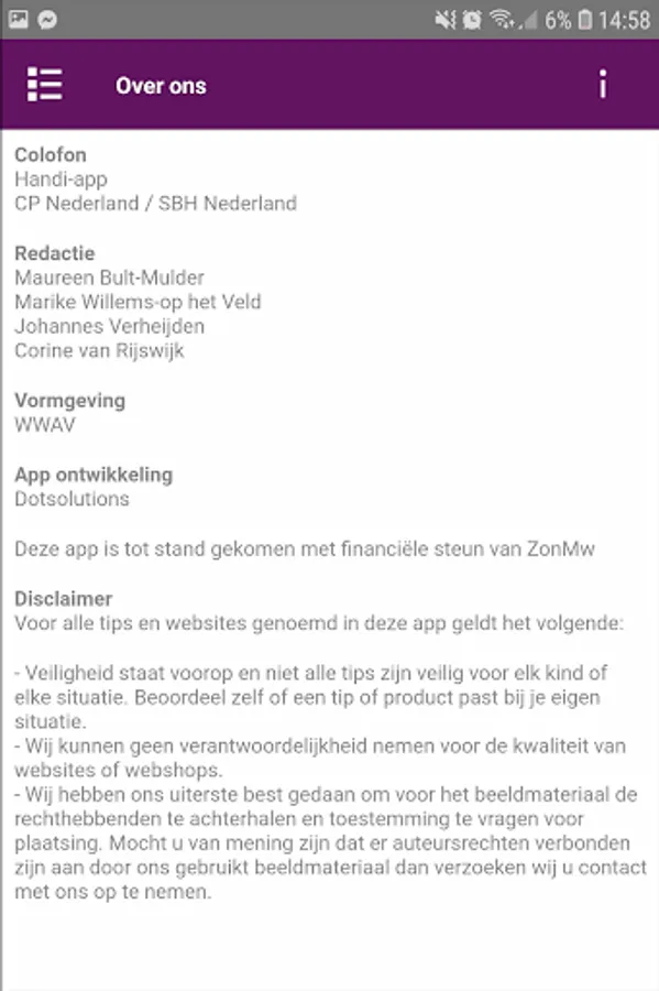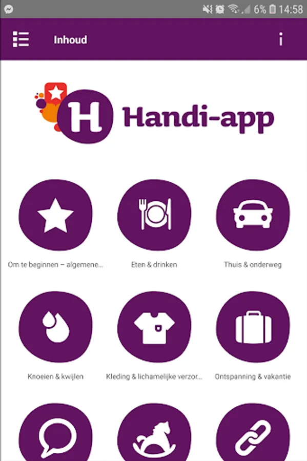 Met de Handi-app geven wij praktische tips van en voor ouders van kinderen met een (lichamelijke) handicap. We hebben meer dan 200 praktische tips verzameld voor het dagelijks leven. Tips over onder andere lichamelijke verzorging, kleding, eten en drinken, spelen en vervoer. Alle tips zijn van en voor ouders dus gegarandeerd handig en uitgeprobeerd!