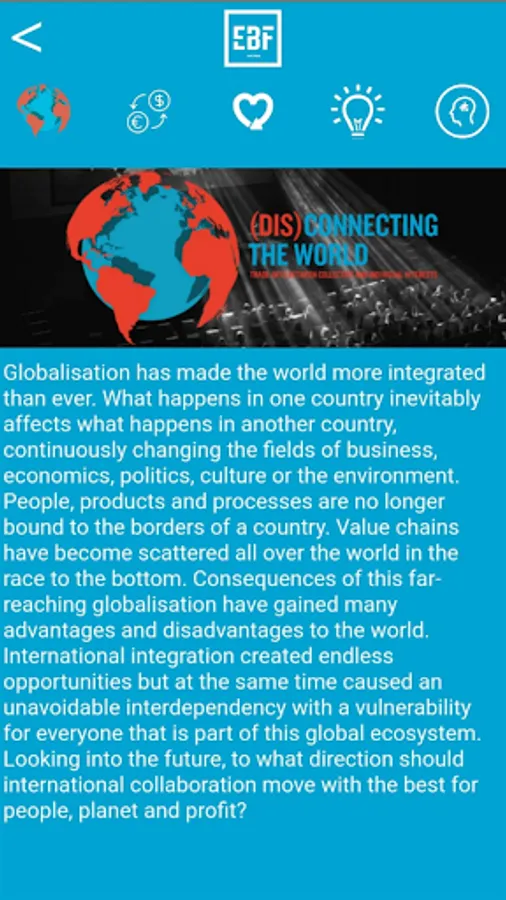 This application contains all the information you will need during the EBF Conference 2019. In the application menu, you will find the programme, speaker information, EBF Conference partners and much more. Furthermore, this app contains all other functions you will need during the conference, such as voting during the pitch competition