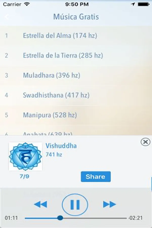 - 9 free pure sounds created for meditation, with a duration of 3'33 "each.