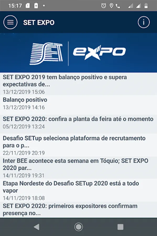 Este aplicativo traz informações e notícias da entidade, dados para contato, conteúdos dos seus perfis nas redes sociais, com destaque para o SET EXPO, maior evento de broadcast e novas mídias da América Latina. Com o app, você terá acesso à programação do Congresso SET Expo, currículos dos palestrantes, planta da feira, informações dos expositores, notícias e recursos exclusivos como rotas do Google Mapas indicando como chegar ao evento, marcação de sessões de interesse e o recebimento de notificações relevantes.
