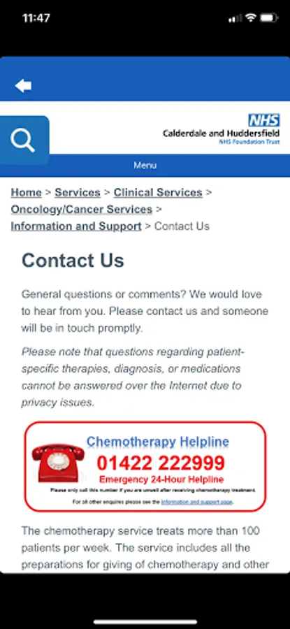 Calderdale and Huddersfield NHS Foundation Trust (CHFT) have designed the CHFT Cancer Support app to help patients, family and carers access information and support. The App offers a variety of resources at your fingertips, prior to, during or after your cancer experience, which we feel will aid your journey in conjunction with your Clinical Nurse Specialists support.