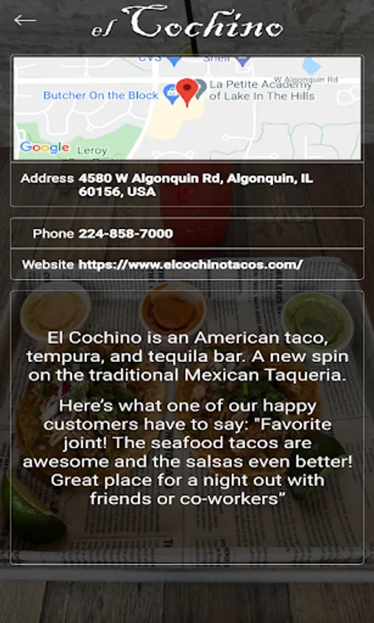 Mobile app for online ordering. El Cochino is an American taco, tempura, and tequila bar. A new spin on the traditional Mexican Taqueria. all from our mobile app.