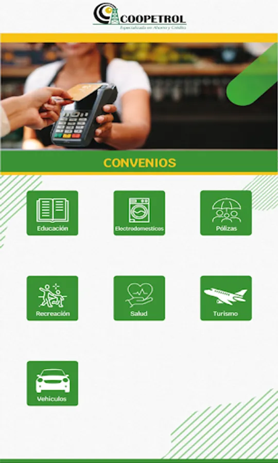Cooperativa Coopetrol's mobile application, in which its associates will be able to know the services and information about all its products, and can also carry out transactions of its products.