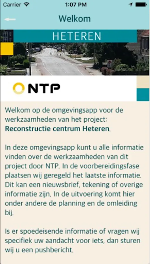 In this app you will find all information about the activities of the project 'Reconstruction Center Heteren'. Important project information, the latest planning and contact information are displayed. You can also leave questions, comments or complaints related to the project on this app.