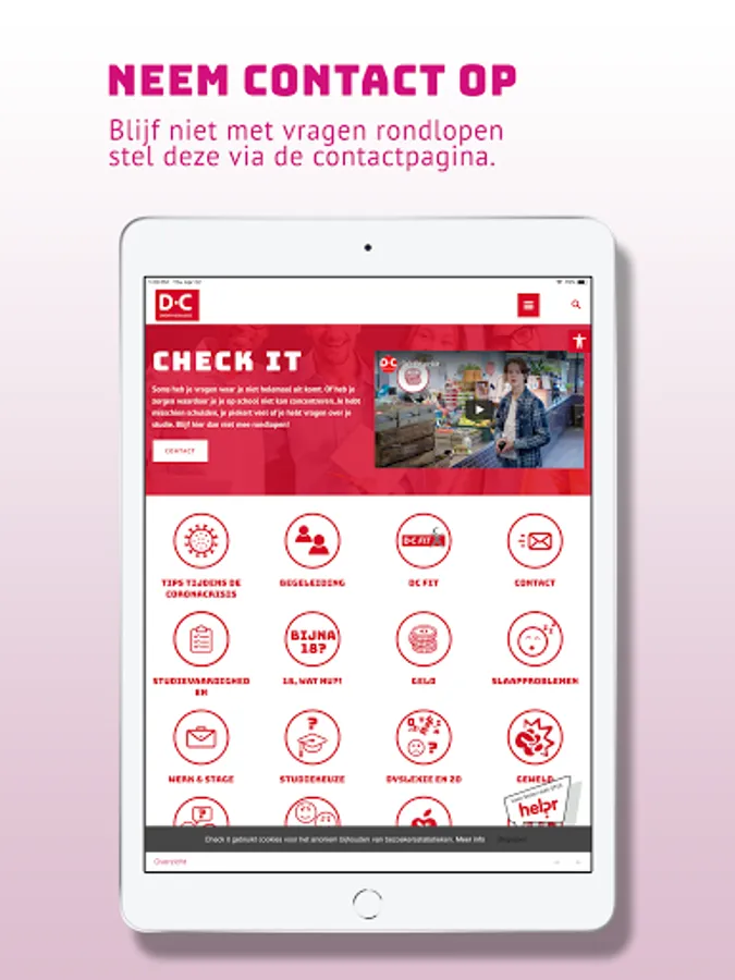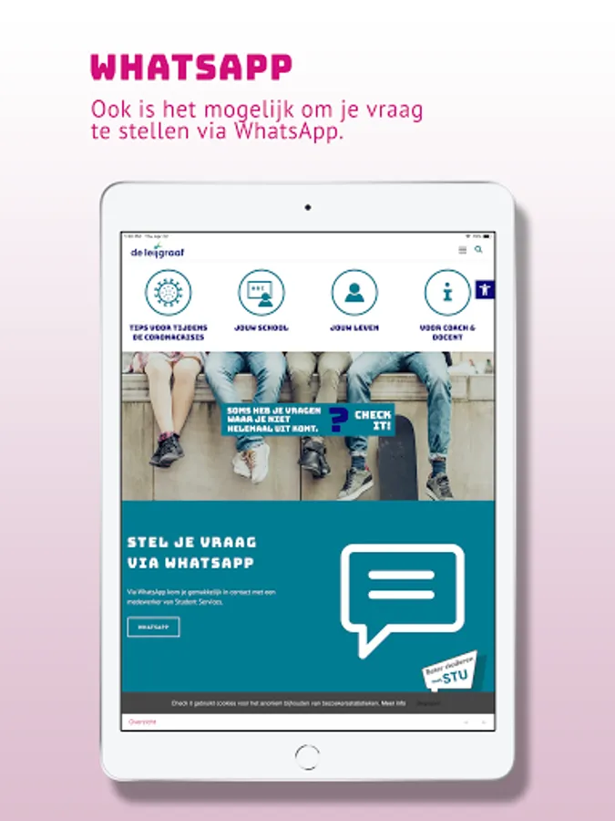 Check it is een online portaal met betrouwbare informatie en communicatie mogelijkheden over studieloopbaan, psychosociaal welbevinden en leefstijl.