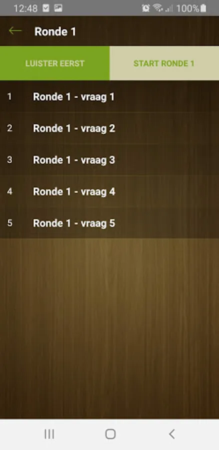 After pressing the 'Start Game' button, you will arrive at the page where all 10 rounds are listed. After this you press 'Round 1' and you can then listen to the 5 questions per round via the button 'Listen first' in order to take in the questions and get an idea of the questions. You can listen to the questions several times before you start. After this you start answering the questions via the button 'Start round 1'. You always have 20 seconds to read and answer the question. By clicking on the image you answer the question. Once you have pressed you cannot change the answer. The timer for the next question starts immediately after pressing.