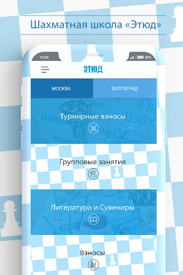 The mobile app “Etude” increases the speed of interaction of the school administration with the parents of students (more than 500 young chess players in Moscow and Volgograd). The main areas of interaction are: remote payment for services and goods, always up-to-date information on the schedule of classes, announcements of events and a convenient calendar of events.