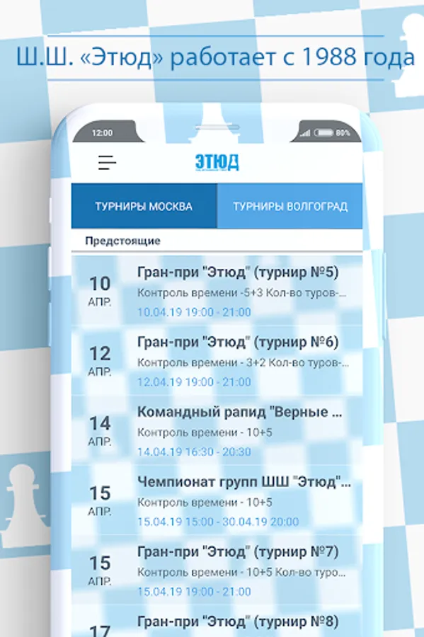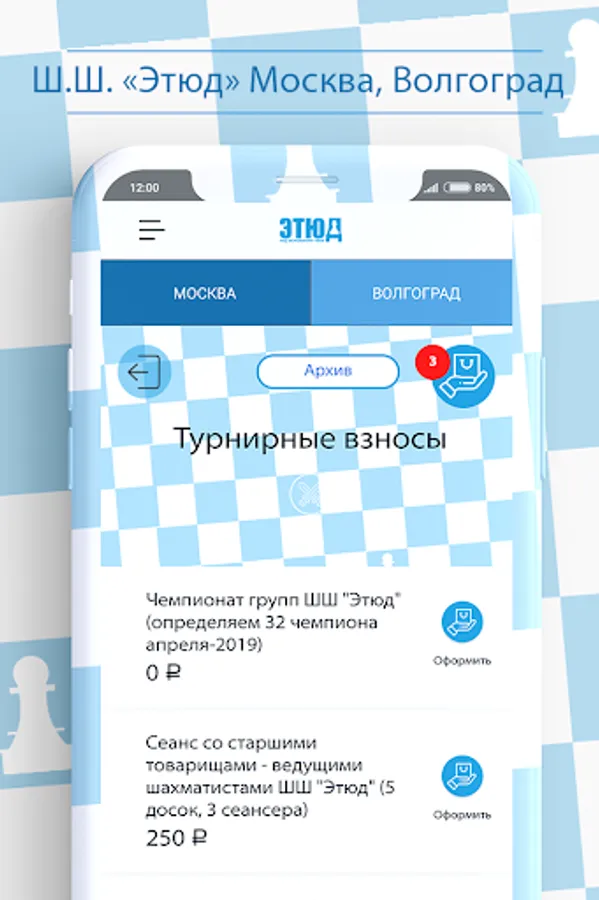 24x7 parents and students themselves can receive feedback from the Etude chess school. Actual information about the schedule of classes, tournaments and other events is always available in the mobile application. The application takes into account that the school fully operates in Moscow and Volgograd, i.e. specificity of activity in each region.