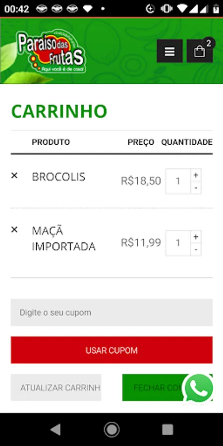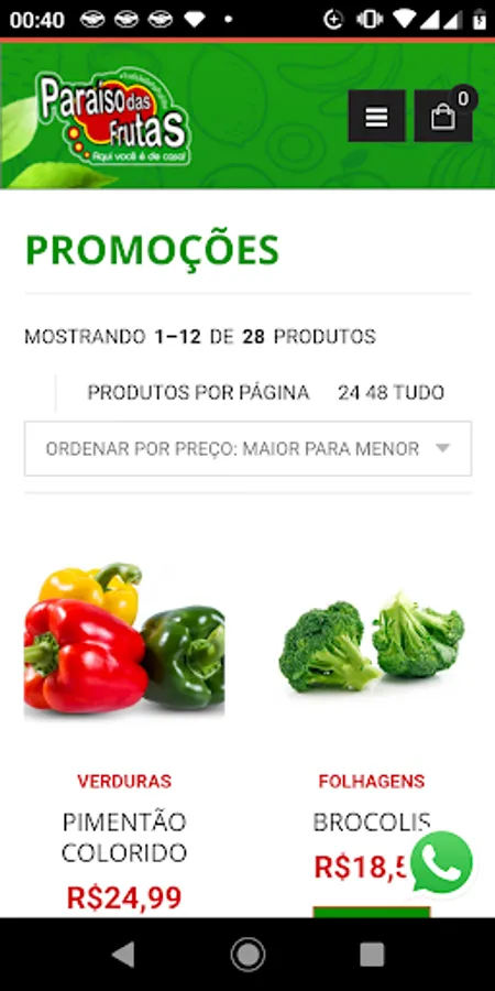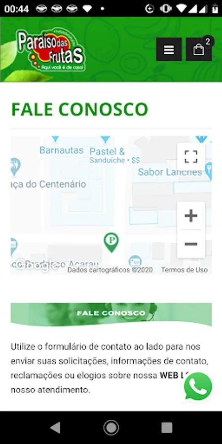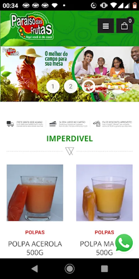 The Paraíso das Frutas store has an exclusive selection of fruits, vegetables, cereals and other products that you can buy and also have the option of Free Shipping to different neighborhoods in the city.