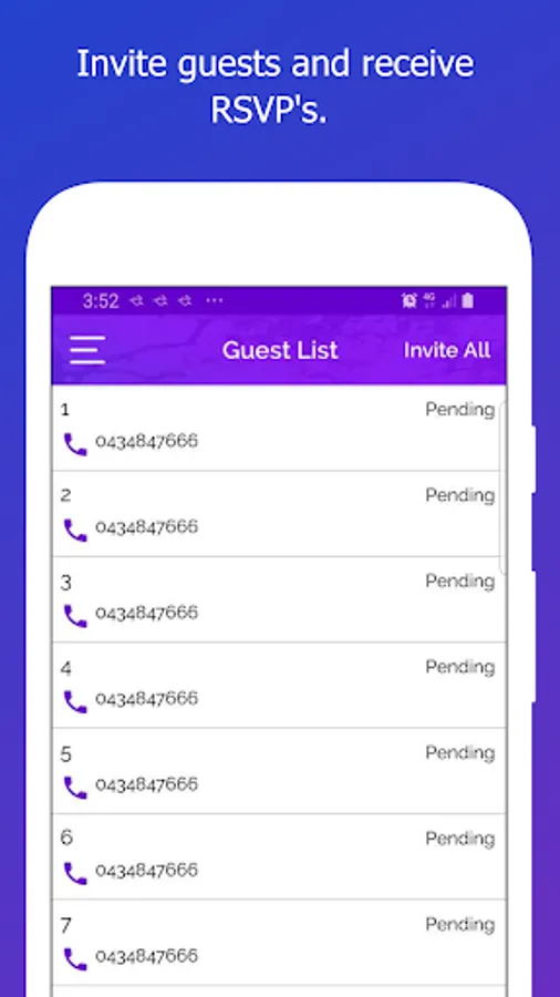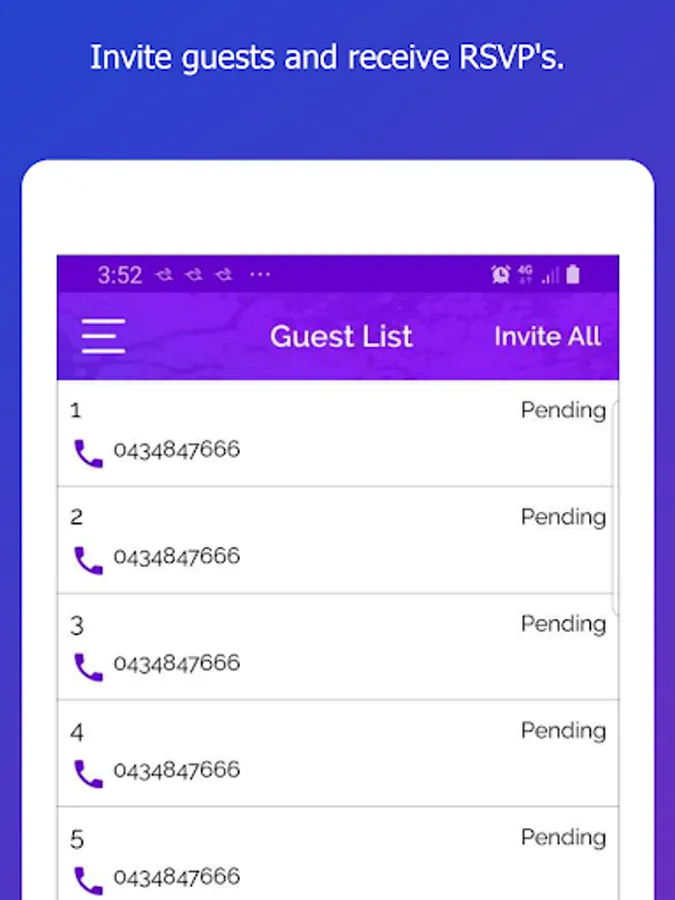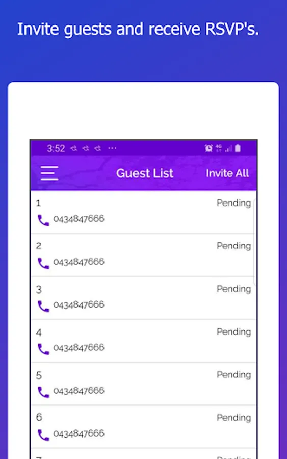 - Send out invites to contacts in your phone or add contacts directly to your guest list in the app