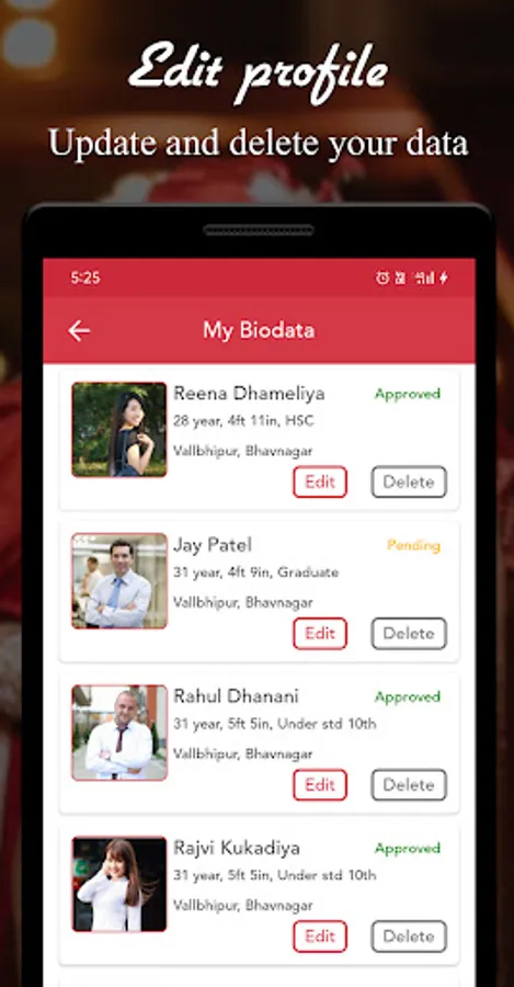 - Create, update and delete your biodata anytime.