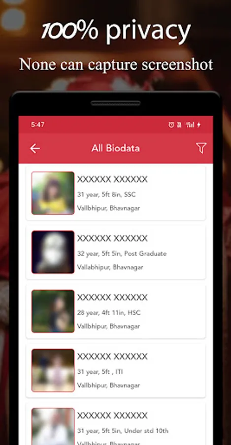 - બીજા કોઈ પણ વ્યક્તિ બાયોડેટા માં રહેલા ફોટોનો સ્ક્રિનશોટ લઇ શકાશે નહિ.