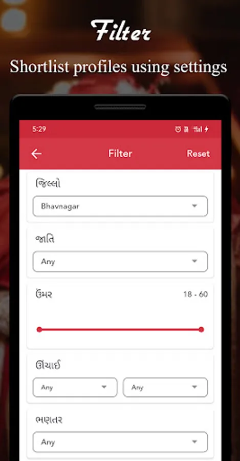 - Advanced filters, find your match by district, gender, age, height, education, marital status and more.